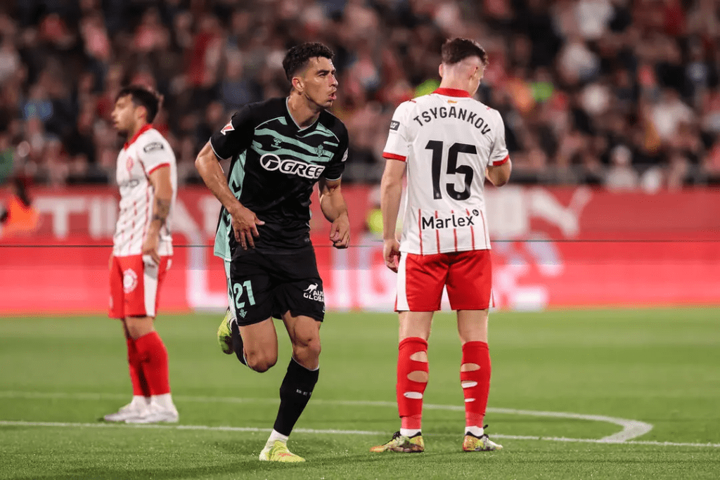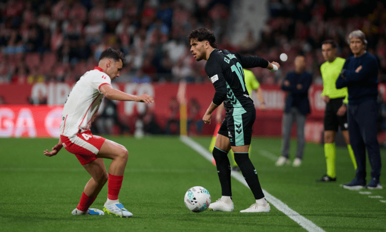 El partido comenzaría con un Betis que trataba de romper las líneas defensivas del Girona y que en varias ocasiones lo conseguía, pero la mala toma de decisiones en los finales de las jugadas, mermaron estas ocasiones. El sentimiento de tener el mando del partido terminaría rápido cuando en el minuto siete Claudio Echeverri burló a Natan y a Bartra con una facilidad pasmosa y tras un rechace, Tsygankov empujaría el balón al fondo de las mallas, haciendo el primer gol del encuentro.