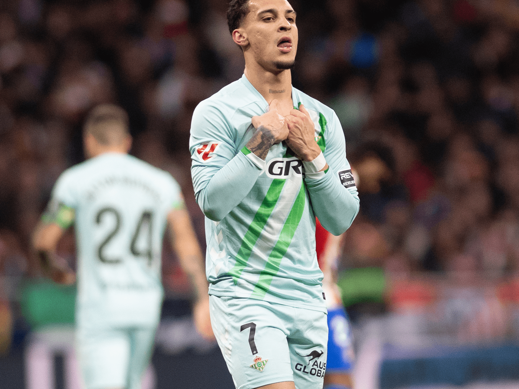 Una vez llegado al minuto 28, se vendría el primer gol del partido. Antony recibe en el pico del área, suelta un gran disparo y Oblak que no andó fino en la jugada la toca y el balón termina entrando. 10º gol esta temporada, seis de ellos en LaLiga. Latigazo con la zurda marca de la casa. Golazo. 0-1 para el Real Betis, que estaba creciéndose en el partido.