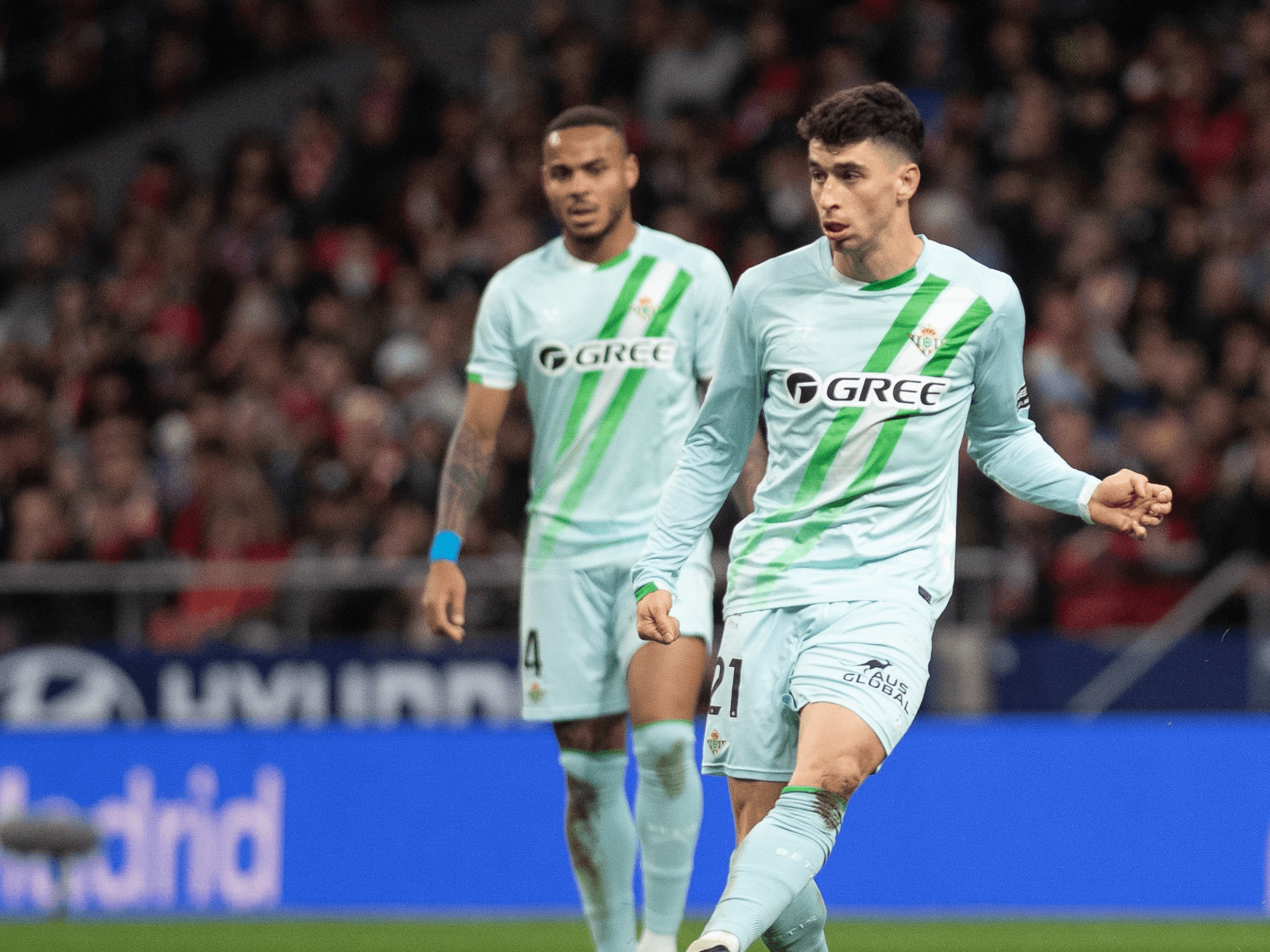 El Atlético no supo como reaccionar al tanto del astro brasileño. Tocaba y tocaba el Atlético de lado a lado sin encontrar el hueco. El Betis, muy solidario, todos defienden. Antony es un lateral más. El Atleti insistía por su banda izquierda pero se encuentra con un Ruibal muy seguro en defensa.