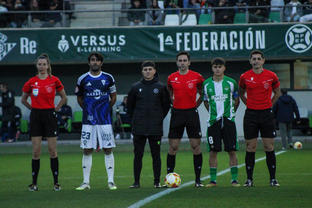El Betis Deportivo fue asentándose poco a poco sobre el terreno de juego, aunque el primer aviso serio llegó desde el lado visitante. A los diez minutos, Elyaz Zidane fue amonestado con tarjeta amarilla tras una falta en el centro del campo, en una acción que cortó una transición del Marbella.