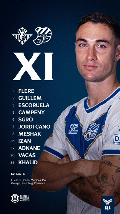 Suplentes: Lucas García, Álex Cano, Juan Julián, Álex Pla, George Andrews, Joan Puig y Antonio Caravaca.