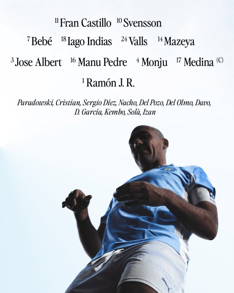 Suplentes: Germán García, Yanis, Embalo, Moha, Sorroche, Gismera, Oreiro, Bladi, Adrián Martín, Rafa Oya e Iván Corralejo.