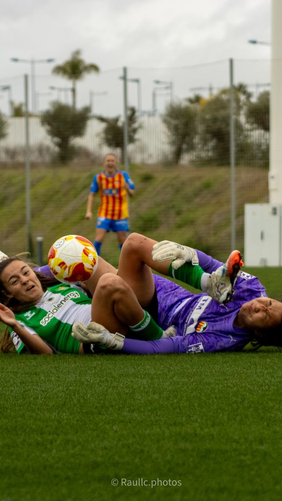 Las valencianistas llegaban con bastante frecuencia por la banda izquierda para encarar el frontal de la línea de las béticas, pero ya fuera el centro o bien fuera el remate entonces iba a ser denegado o bien por algunas o por otras.