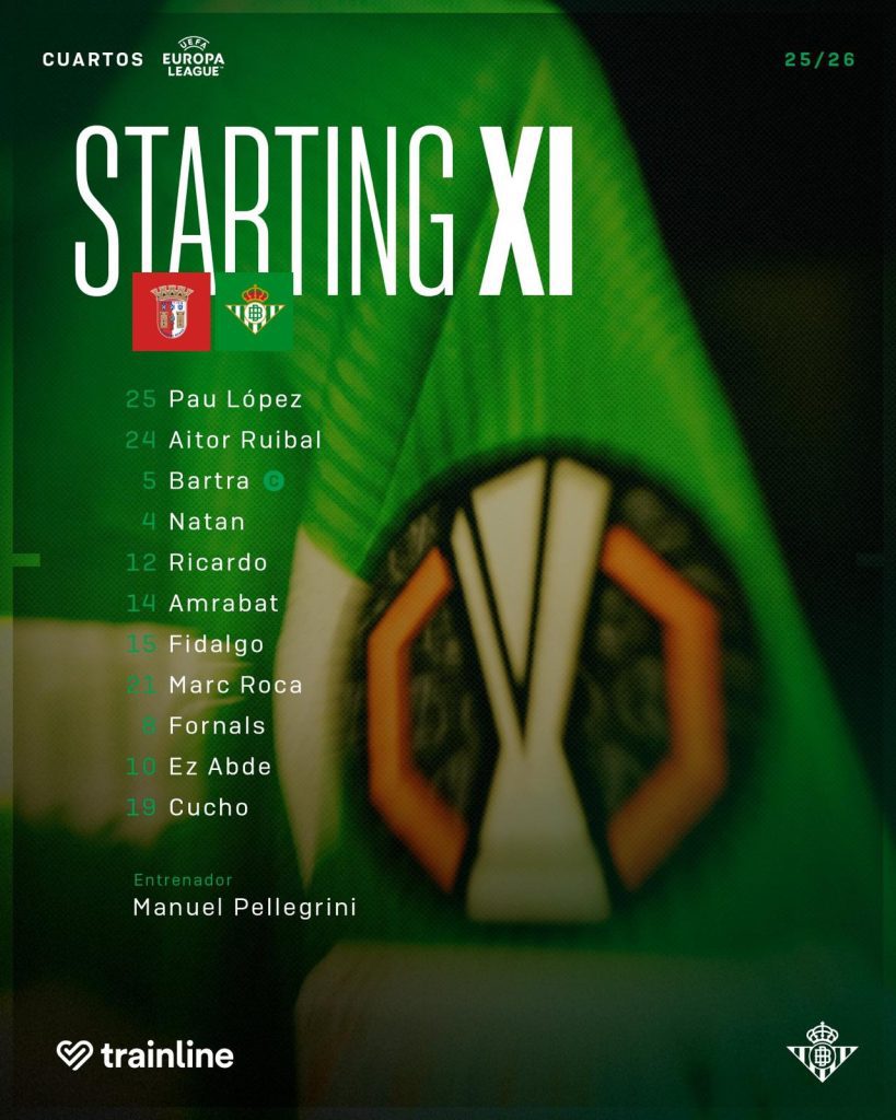 El Real Betis logró un empate de mérito (1-1) ante el SC Braga en la ida de los cuartos de final de la UEFA Europa League, en un encuentro que se le puso cuesta arriba desde el inicio pero que supo reconducir con carácter y eficacia. Los de Manuel Pellegrini, superados en posesión pero más punzantes en ataque, dejan la eliminatoria completamente abierta para resolverse en La Cartuja.