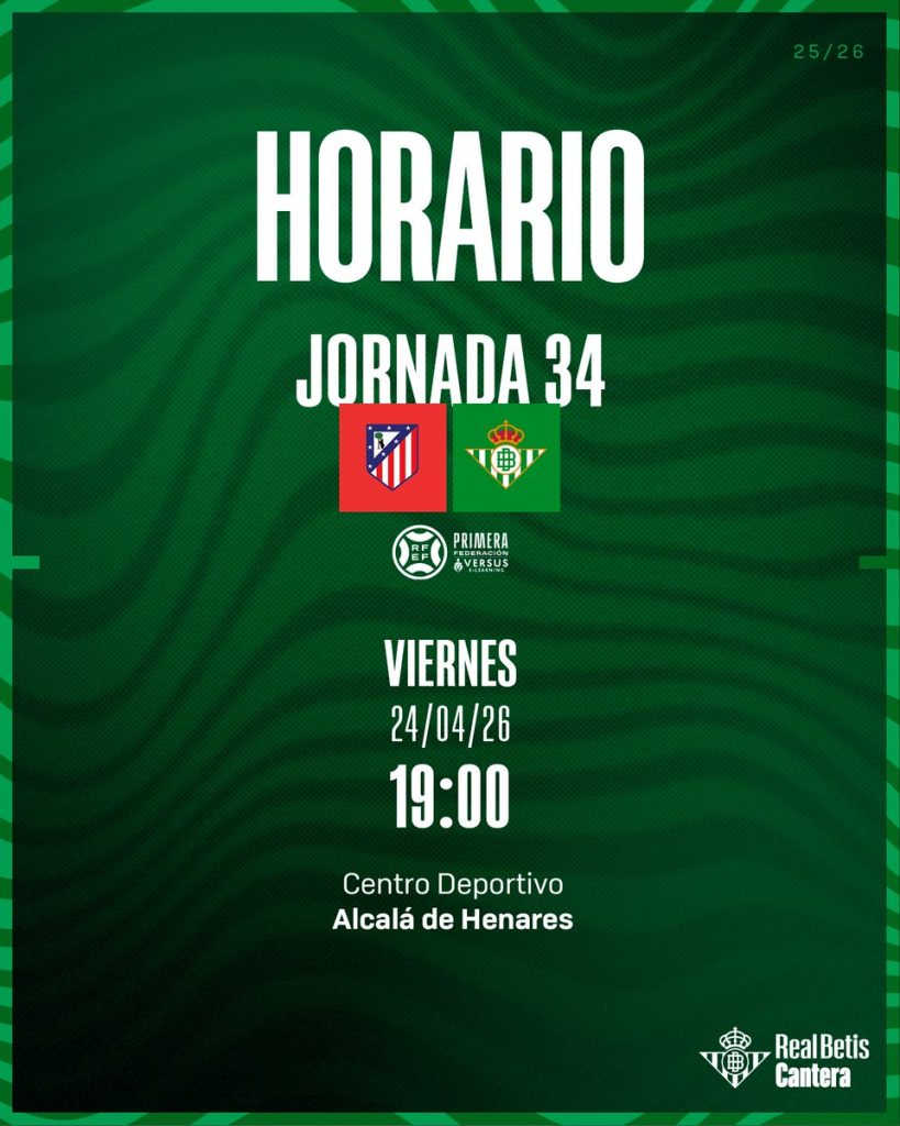 El Betis Deportivo afronta este viernes 24 de abril a las 19:00h en Centro Deportivo Alcalá de Henares, un partido que va mucho más allá de tres puntos. Ante el Atlético Madrileño, el filial verdiblanco se mide a un rival que está peleando por el ascenso.