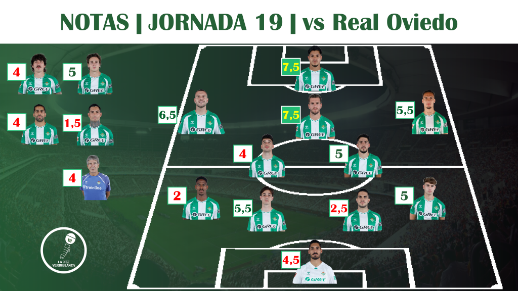 Estas son las puntuaciones de los jugadores del Real Betis frente al Real Oviedo, correspondiente a la jornada 19 de LaLiga.